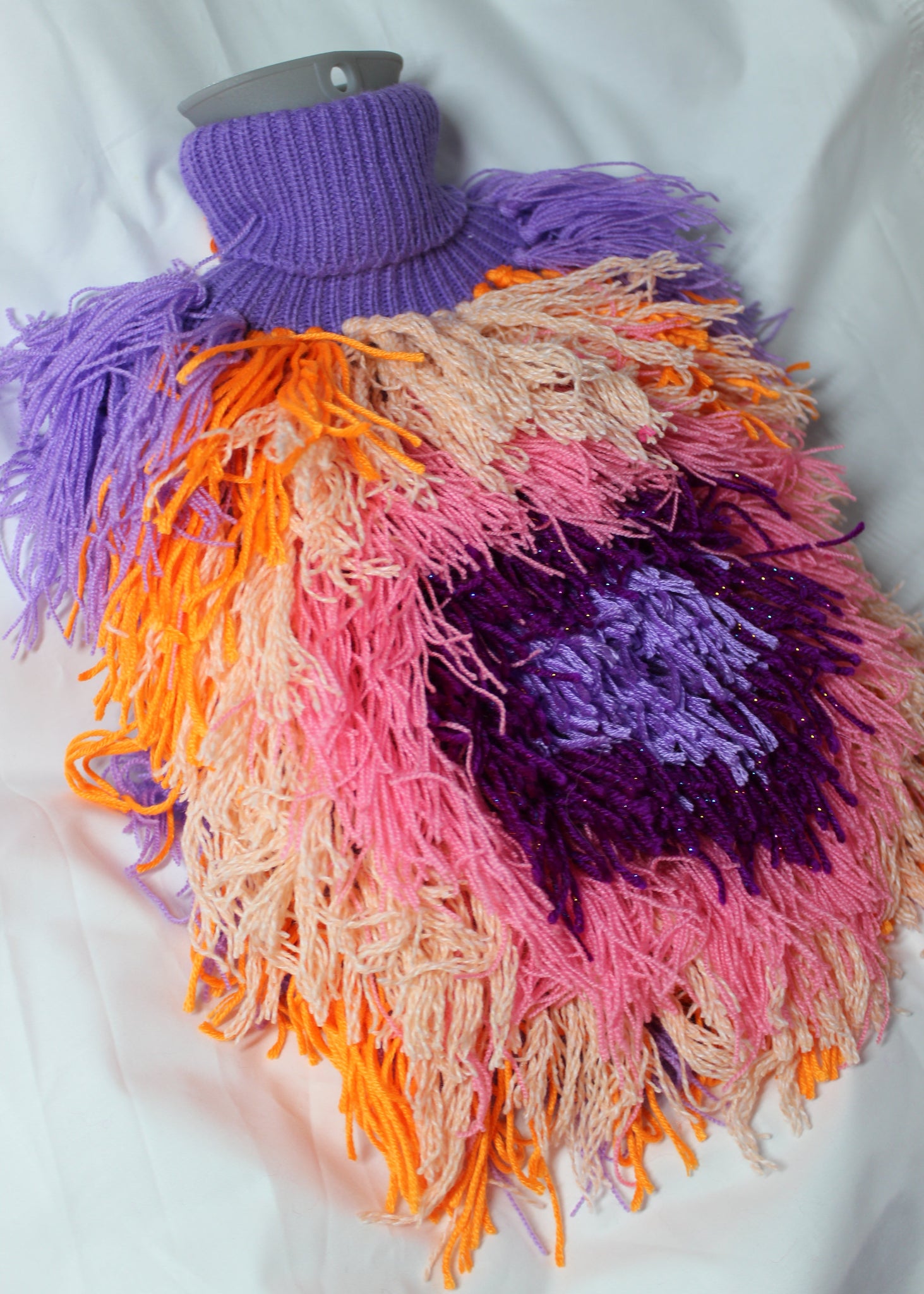 The FLUFFS are hot water bottles with hand tufted cozy cuddling wool covers.