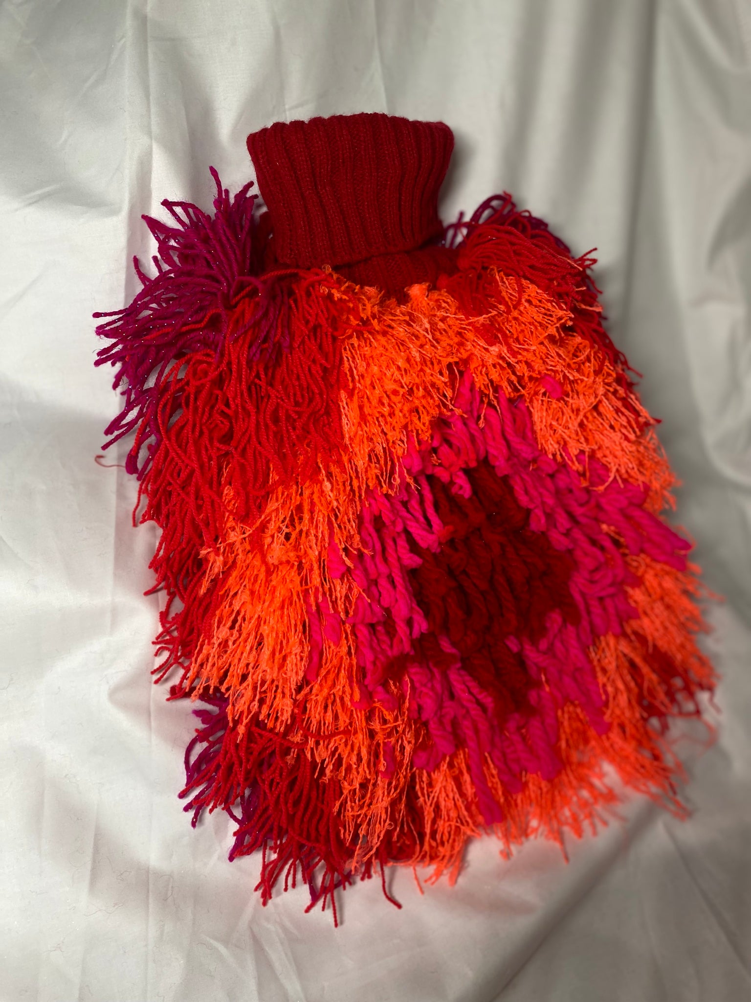 The FLUFFS are hot water bottles with hand tufted cozy cuddling wool covers.